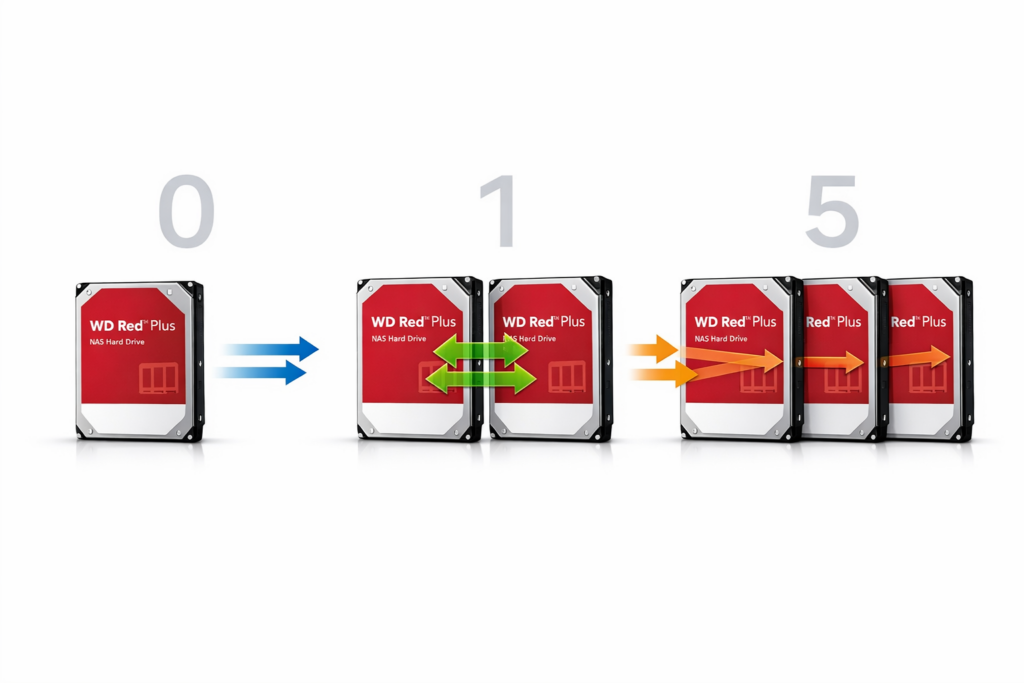 RAID 1 ist für Einsteiger die beste Wahl — aber erst nach einem vollständigen Backup deiner bestehenden Daten. Kaufe zwei identische WD Red Plus 4TB kaufen Festplatten für etwa 240 Euro und richte RAID 1 Schritt für Schritt ein.